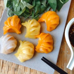 Sản phẩm được làm từ bột tiêu chuẩn, nhập khẩu từ Thailand, màu sắc hoàn toàn tự nhiên (màu đỏ từ quả gấc, vàng từ bí đỏ – bí ngô, màu xanh lá hẹ; chè xanh; chùm ngây), Nhân có các loại: hải sản, tôm thịt, nấm (há cảo chay)